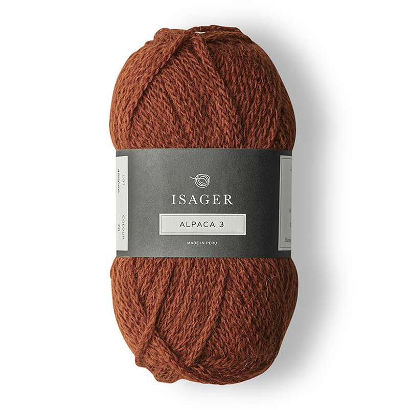 Isager Alpaca 3 jest włóczką typu I-Cord, wyglądem przypomina sznurek, który rdzeń jednak ma pusty. To nadaje włóczce lekkości i przewiewności. Posiada taki sam skład jak Alpaca 2, czyli 50% alpaka i 50% wełna. Idealnie sprawdzi się na ciepłe swetry, które mogą być wykonywane pojedynczą nitką na grubszych drutach 6.00-7.00 mm. Wykończenia swetra natomiast można wykonać na drutach 5.00mm.