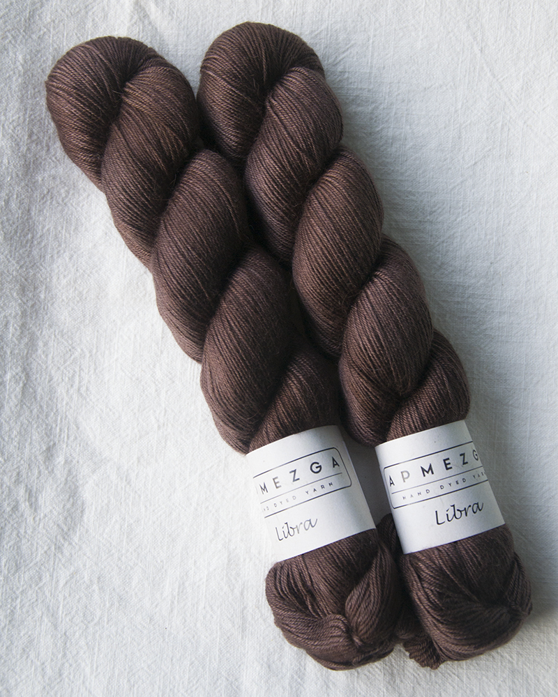 Libra jest włóczką litewskiej firmy Apmezga, która farbuje swoje włóczki ręcznie, dlatego każdy motek jest unikatowy. Jest to włóczka luksusowa, która składa się z wełny wielbłądziej oraz najszlachetniejszego jedwabiu morwowego co nadaje jej niesamowitej miękkości. Może być przerabiana pojedynczą nitką, podwójną lub można ją połączyć z innym włóknem np. moherem. Świetnie sprawdzi się do wykonania swetrów, kardiganów, czapek, szalików, chust, bluzek, topów.