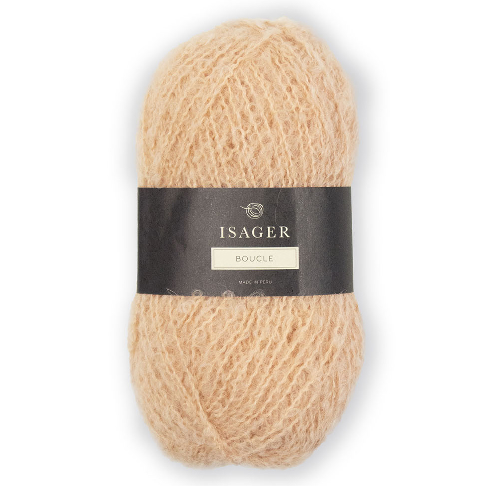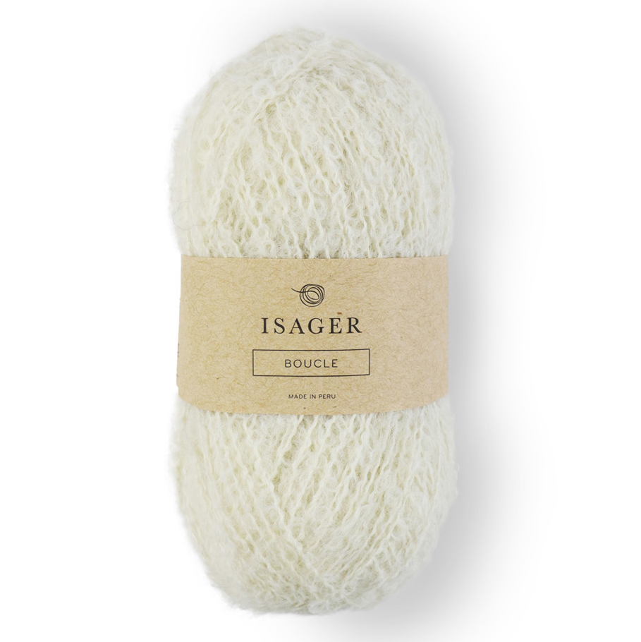 Isager Bouclé jest puchatą włóczką składającą się w 100% z alpaki. Dzięki temu zyskuje niezwykłą miękkość. Ale to co najbardziej wyróżnia Bouclé jest struktura nitki a mianowicie to, że przez główny rdzeń przeplatane są luźno inne pasma włókien, które tworzą jakby łańcuszek. Dzięki temu przypomina swoją puchatością owieczkę :)