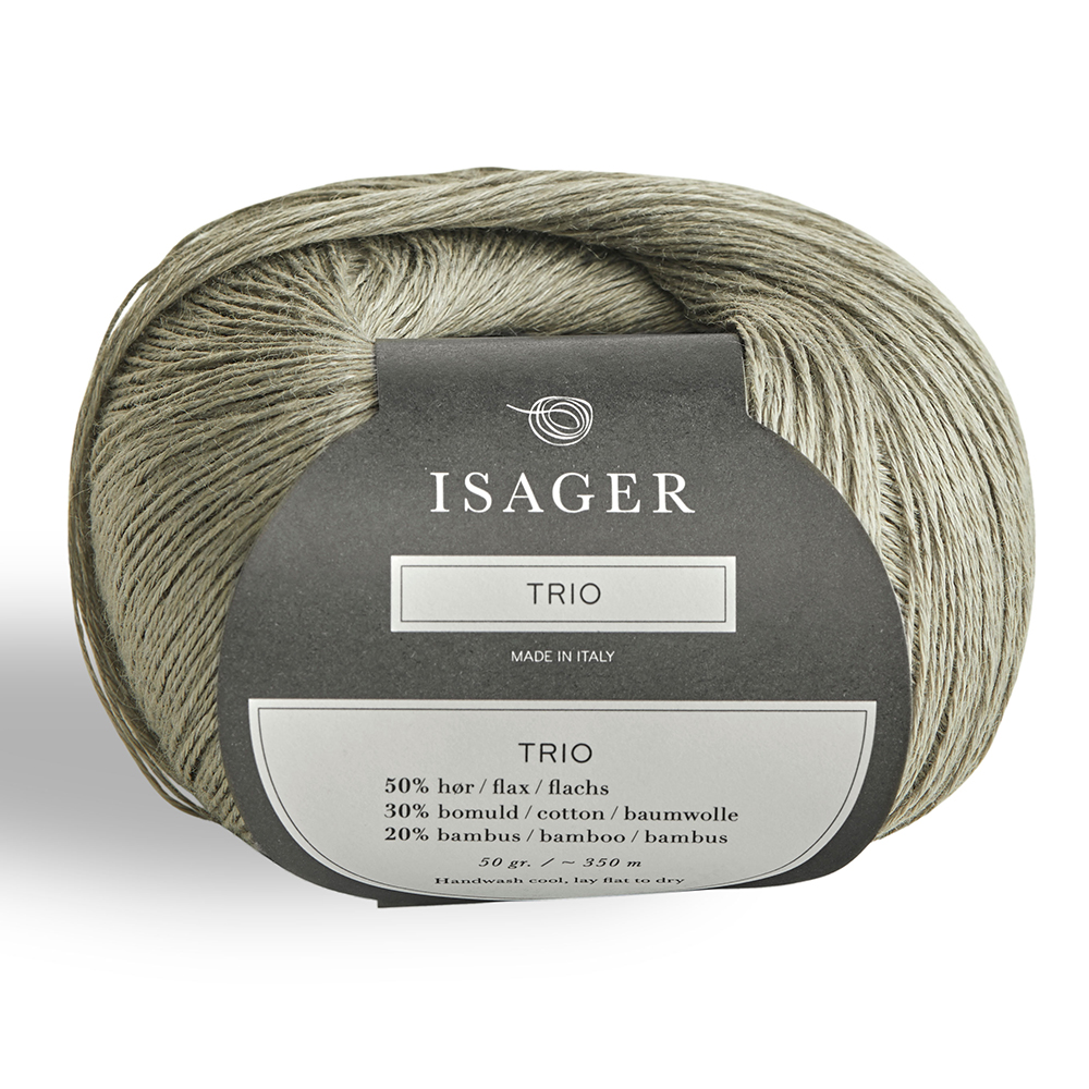 Trio 1 jest cieniutką włóczką duńskiego producenta Isager, która składa się z lnu, bawełny i lyocellu. Może być przerabiana jako pojedyncza nitka lub łączona z kilku nitek lub jako nitka towarzysząca do innych włóczek. Sprawdzi się jako alternatywa dla alergików, a także jest to idealna włóczka na wiosenno-letnie projekty. Przędzona oraz farbowana jest we Włoszech.